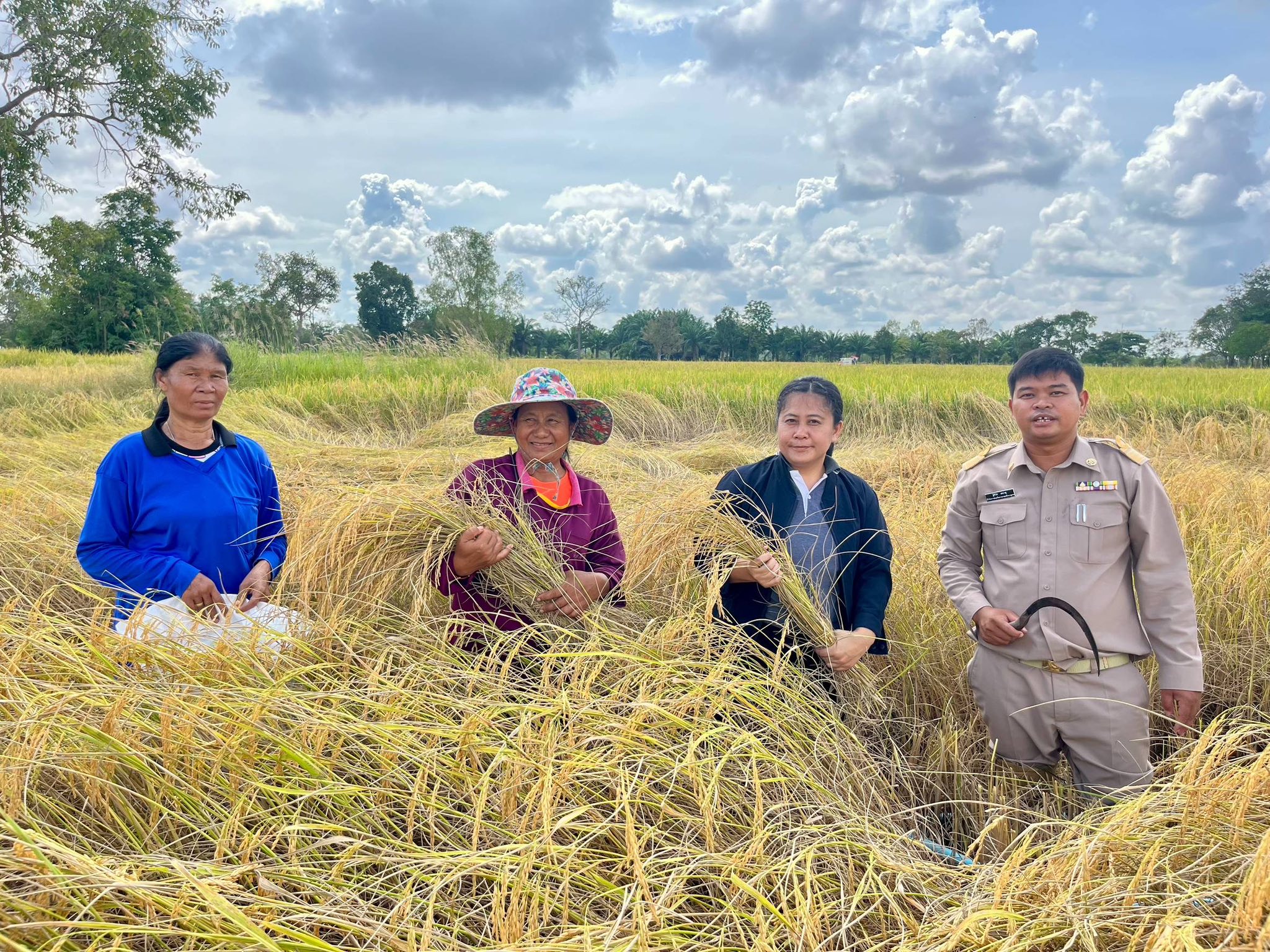 นายสุชาติ กลิ่นทองหลาง เกษตรจังหวัดศรีสะเกษ มอบหมายให้นายภวิศ บุรินทร์ นักวิชาการส่งเสริมการเกษตรปฏิบัติการ และนางสาวรัชติภรณ์ เผ้าอาจ นักวิชาการส่งเสริมการเกษตรปฏิบัติการ กลุ่มส่งเสริมและพัฒนาการผลิต ลงพื้นที่สุ่มวัดผลผลิตข้าว แปลงทดสอบและถ่ายทอดเทคโนโลยีการเพิ่มผลิตภาพการผลิตพืชหลังนาด้วยถั่วเขียว สายพันธุ์ KUML8 และชัยนาท72 โครงการทดสอบและถ่ายทอดเทคโนโลยีการเพิ่มผลิตภาพการผลิตพืชตระกูลถั่ว ณ แปลงเกษตรกร นางราตรี ขุนพรม อำเภอน้ำเกลี้ยง จังหวัดศรีสะเกษ